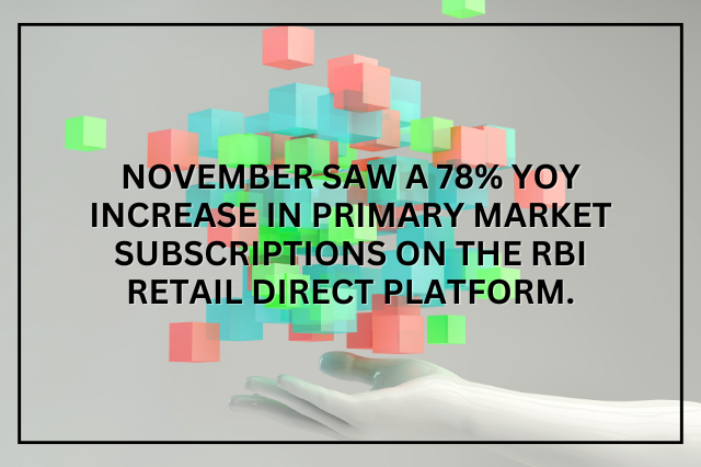 The total primary market subscription by retail investors was Rs 5,624.85 crore as of November 18, up from Rs 3,153.31 crore as of November 20, 2023, according to retail direct data from the Reserve Bank of India (RBI). Treasury bills accounted for the majority of th view more...